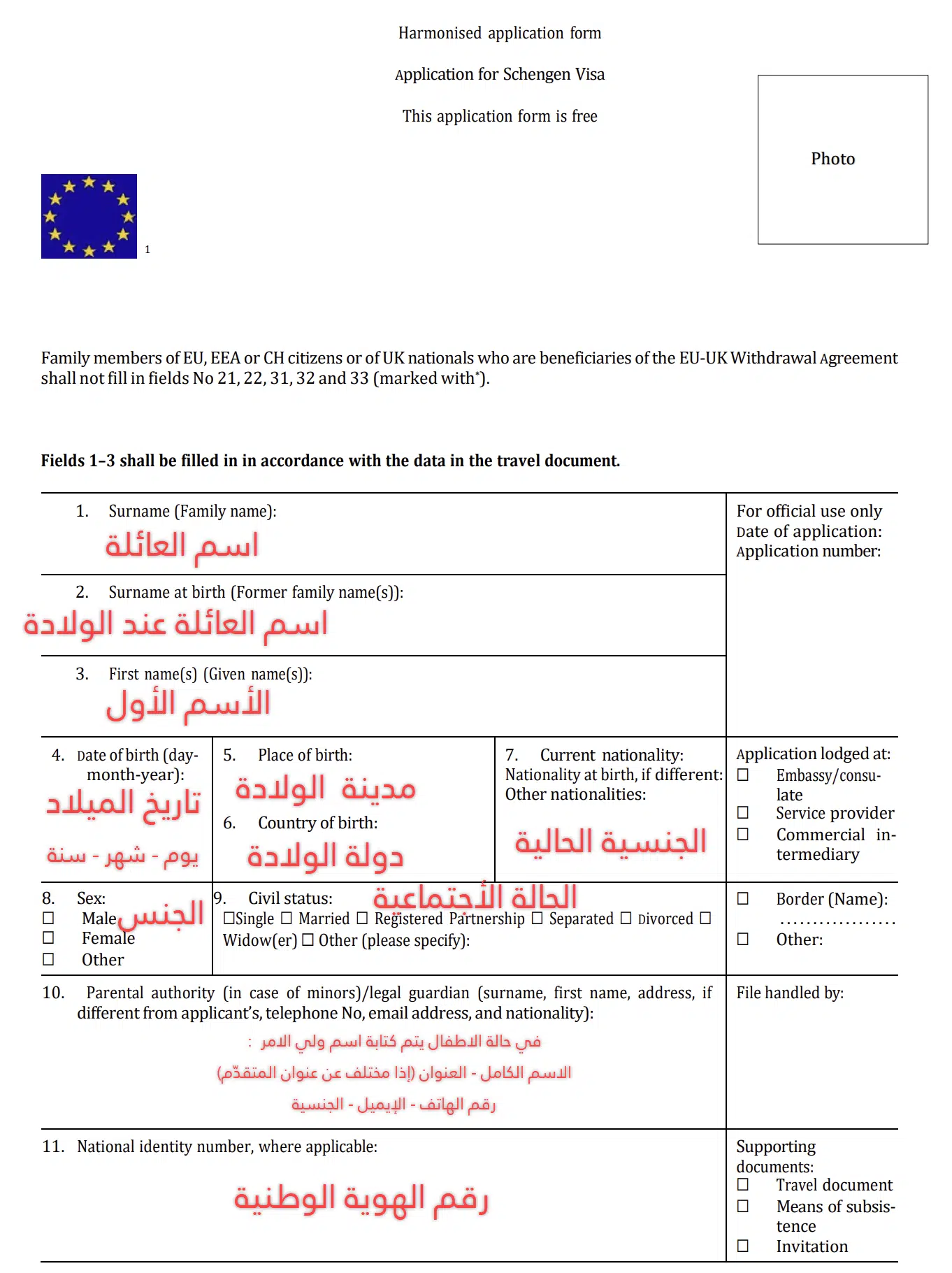 - تبعئة نموذج طلب التأشيرة الايطالية: